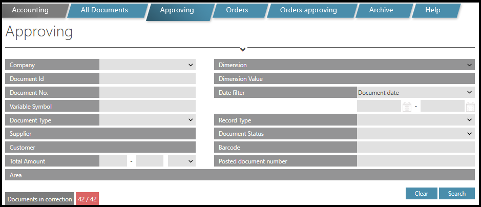- Company – depending on your access rights, you can approve invoices of your own company and/or other companies.