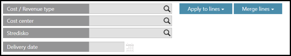 - Cost/revenue type, Cost center, Department / Dimensions – Those fields are not mandatory. Only some clients use them (mainly used in Invoicing module). To merge multiple lines into one in the Order/Invoice, follow this: