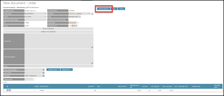 Check the Order data and if all is correct, click Start Workflow button.