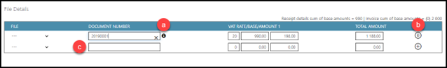 - Document type – (Purchase invoice, Sales invoice etc.)
