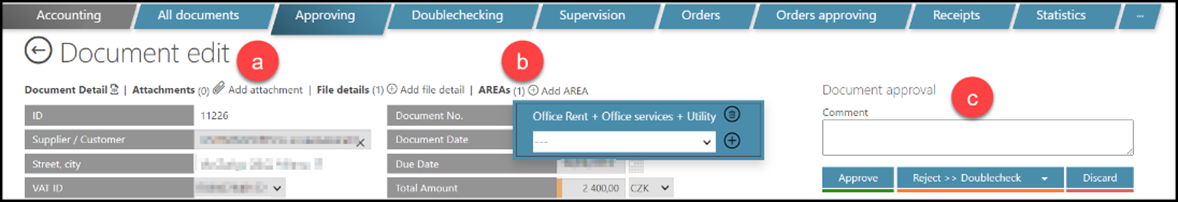 Comment – Please be aware that anything, that you type into the “comment” field will be saved even without you making any other action in the invoice approval process.