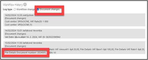 In Document history, users with access rights can see the Document number of paired Order / Orders and changes in status.