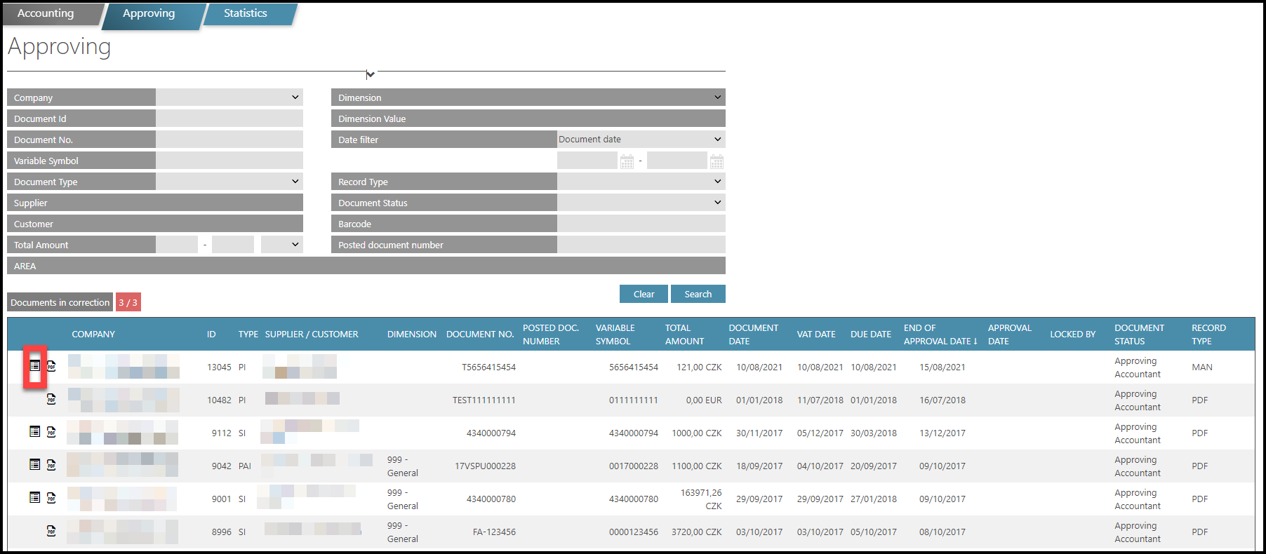 - Document Status – Approved, Draft, Import, Correction etc.