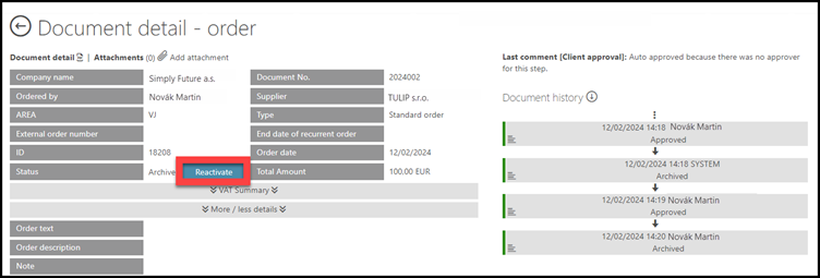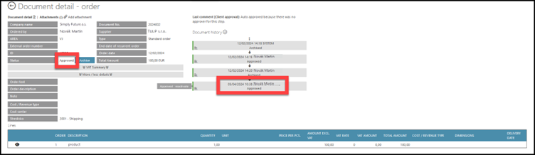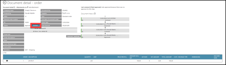 Approve – The changes you made in the document will be saved; you approve the correctness of the data. After pairing Order&Invoice in full amount, the Order status becomes “Archived”.
