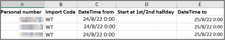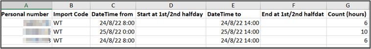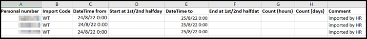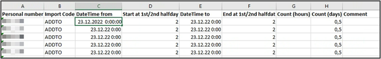 - Count (days) – it is a control column only. Do not enter anything for full days requests. The important information is in DateTime from and to columns!