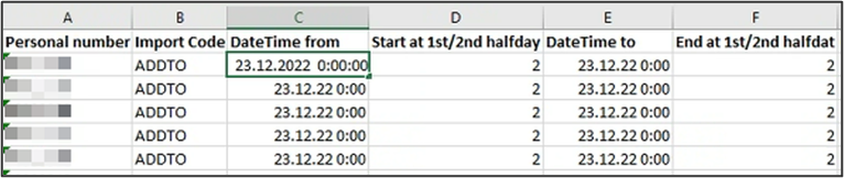 - End at 1st./2nd. halfday – Those two columns are used for half-day requests.
