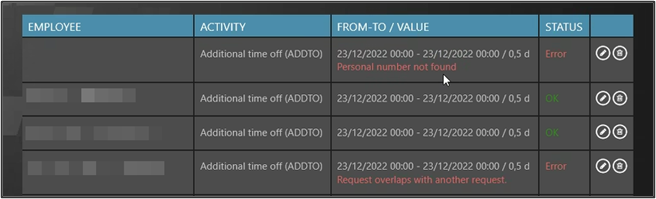 - Warning in orange – indicates an error in the import, but it is not so serious. See the description of error in the FROM-TO / VALUE column. You can import requests with this warning.