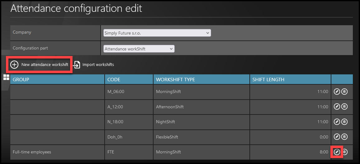 Click on the New attendance workshift button.