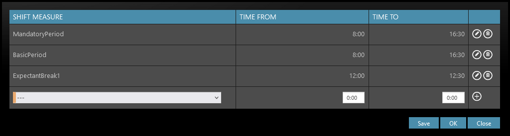 - Break forbidden time – Set up time at the beginning & at the end of a shift when break is not allowed to be taken. For example 15 minutes means the employee cannot take the break 15 minutes after shift start and also 15 minutes before shift end.