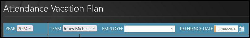 - Reference date – default is today. If you choose a different date, the requests on the screen will change. Only vacations that were planned in vacation plan up to the reference date will display. For example: