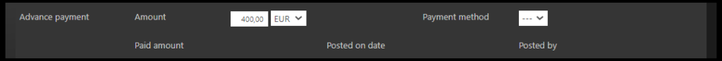 This is an amount of money you receive before the business trip. If you wish to receive Advance Payment, you must fill in those two fields: