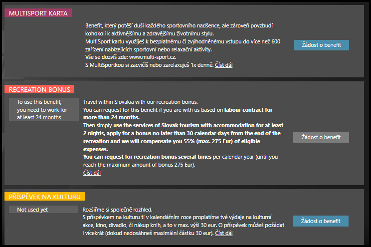 Naleznete zde detailnější popis daného benefitu, jeho podmínky, hodnotu, výšku či trvání.