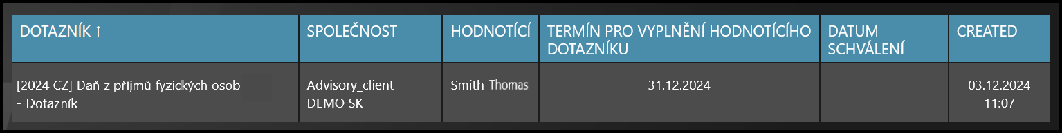 - Po aktivaci/přihlášení se Vám spřístupní dotazník (případně také dokumenty k podepsání: Smlouva o poskytnutí služby a Plná moc). Vyplňte a odešlete dotazník a dokumenty v daném termínu.