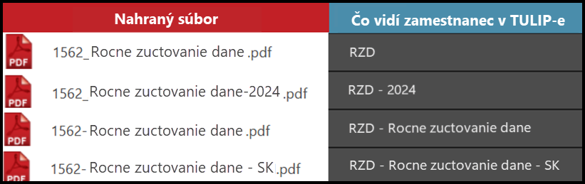 Soubor musí být uložený s názvem v určitém formátu. Tímto způsobem může TULIP poslat soubor správnému zaměstnanci.