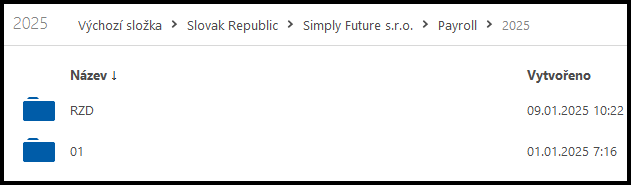Kořenová složka » Země klienta » Název klienta » Payroll (Mzdová složka) » Rok » Název daňové složky (například “RZD”)