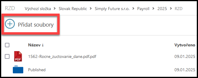 - vytvořit podsložku v mzdové složce (můžete pouze přidat soubory do této složky)