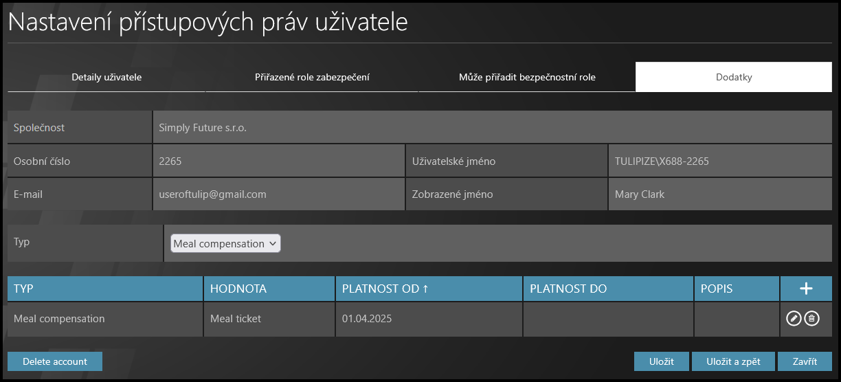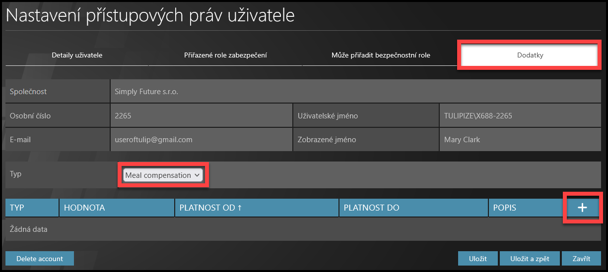 Upozornění: zobrazené nastavení TULIPu vždy závisí na konkrétních požadavcích a nastavení přístupových práv vaší společnosti. Ne všechny společnosti využívají tuto funkcionalitu. Nastavení rovněž závisí na legislativě ve vaší zemi.