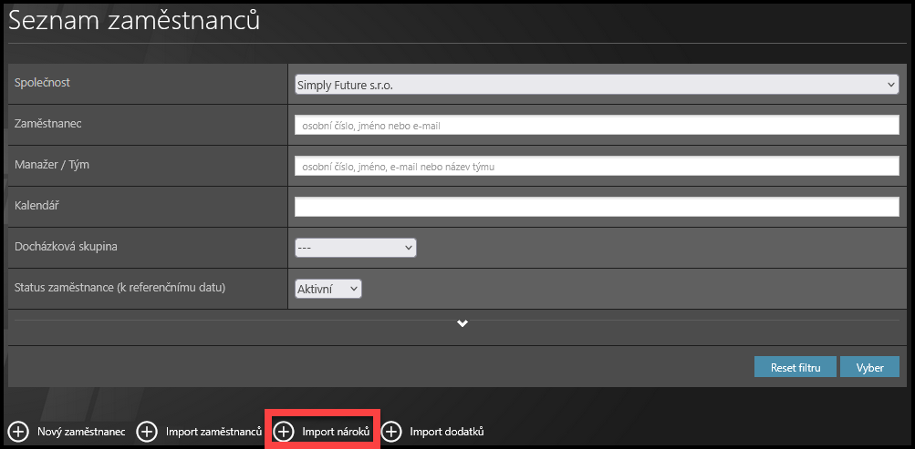 Klikněte na možnost Import nároků.