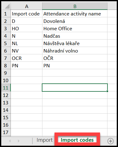Klikněte na AttendanceImportTemplate.xlsx a stáhněte si šablonu.