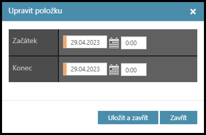 - End at 1st./2nd. halfday – Konec v první / druhé polovině dne – u celodenních požadavků nic nezadávejte.