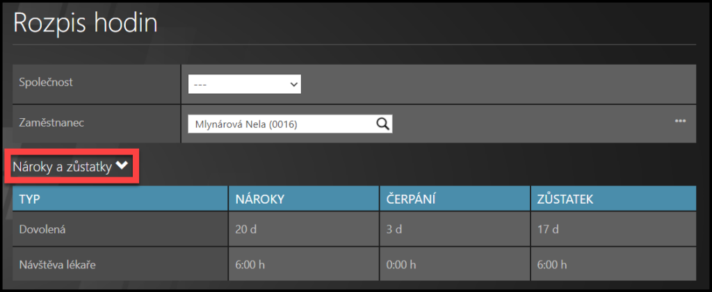 Takto uvidíte zůstatek dovolené pro aktuální rok.