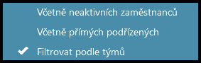 Zapnutý filtr týmů zobrazuje pouze názvy týmů, ke kterým máte přístup (pokud jste manažer, obvykle pouze váš vlastní tým).