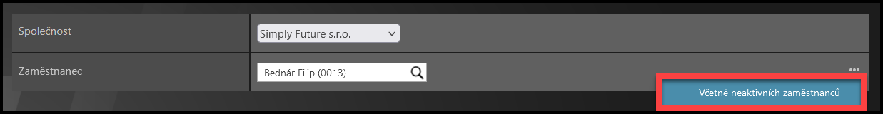 Všichni aktivní i neaktivní zaměstnanci (jen ti, ke kterým máte přístupová práva), jsou pro vás viditelní ve výběru filtru.