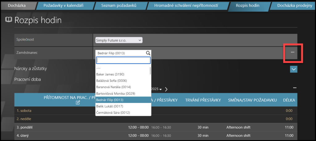 Pokud požadovaného zaměstnance nenajdete, klikněte na tři tečky.