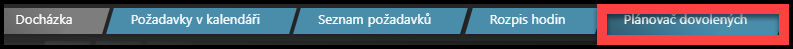 Berte prosím na vědomí, že Plánovač dovolených je oddělená funkce od vaší docházky. Pokud vytvoříte žádost v docházce, ale ne v Plánu dovolené, Plán dovolené nebude zobrazovat a počítat se žádostí v docházce a naopak.
