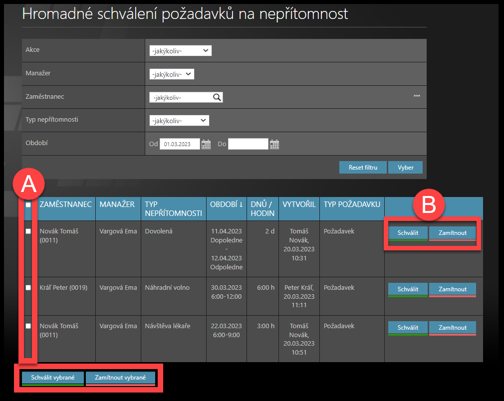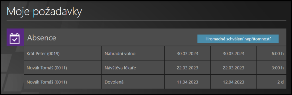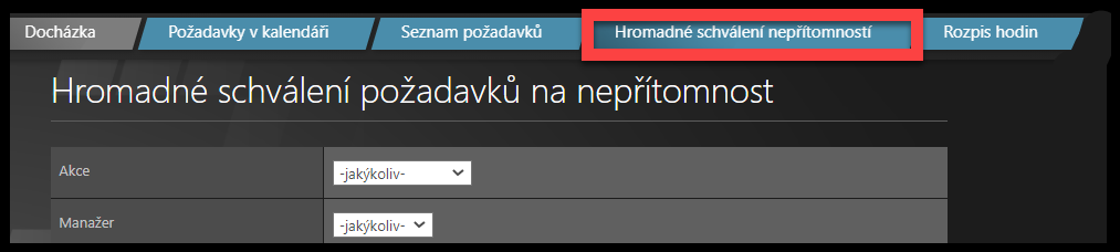 Klikněte na možnost Hromadné schválení nepřítomností.