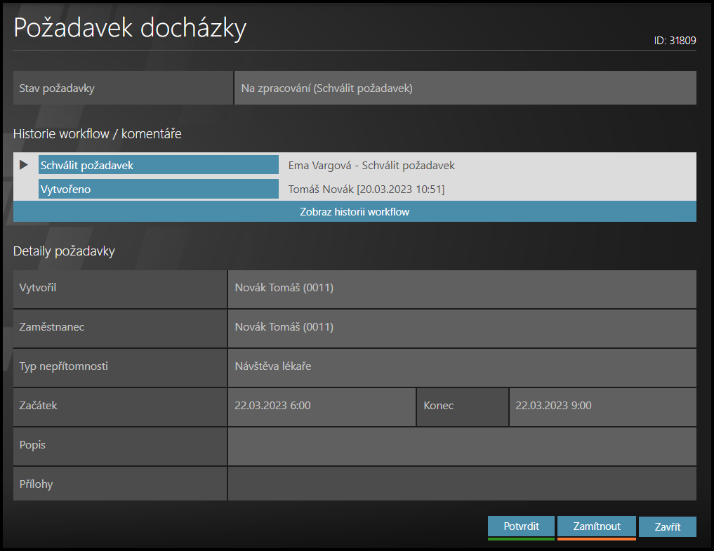 Chcete-li otevřít podrobnosti požadavku, klikněte na jméno zaměstnance.