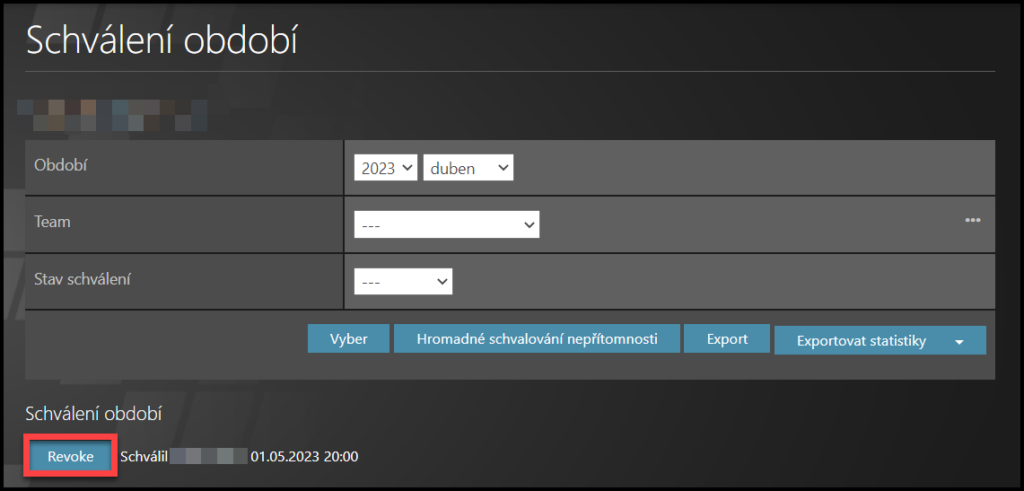 Tlačítko Revoke umožňuje správci HR znovu otevřít období.