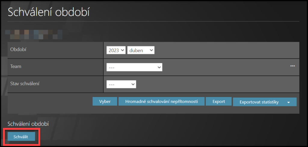 Po schválení docházky VŠECH zaměstnanců se zobrazí nové tlačítko pro schválení.