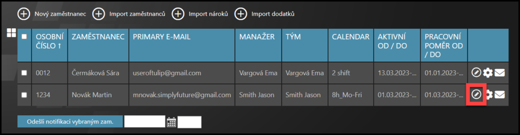Vyberte zaměstnance – Klikněte na ikonu tužky.