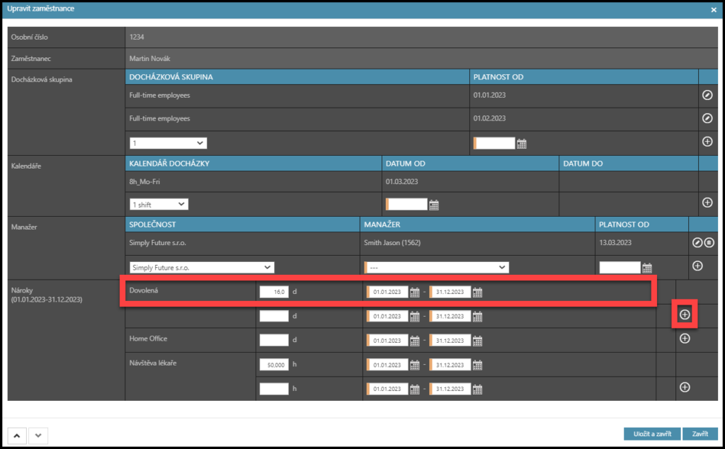 TULIP neví, který zaměstnanec má k dispozici větší nebo menší kvótu (nesleduje délku smlouvy, věk zaměstnance, počet dětí, dovolenou navíc od zaměstnavatele, individuální nároky uvedené ve smlouvě atd.) – nahrajte nárok do TULIP-u: