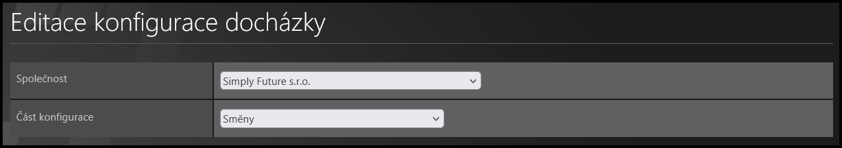 Pokud máte přístup pouze k jedné společnosti, zobrazí se pouze konfigurace této společnosti.