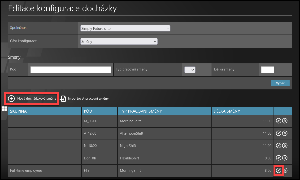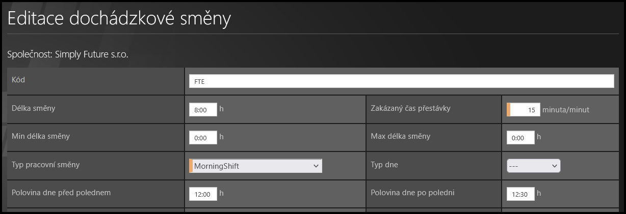 - Pokud máte více směn se stejnou délkou, pojmenujte je podle začátku a konce (8:00-16:30, 7:30-11:30 atd.).