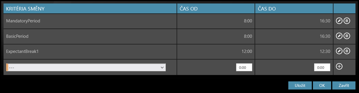 - ExpectantBreak2 (2.Očekávaná přestávka): Pro směnové pracovníky.