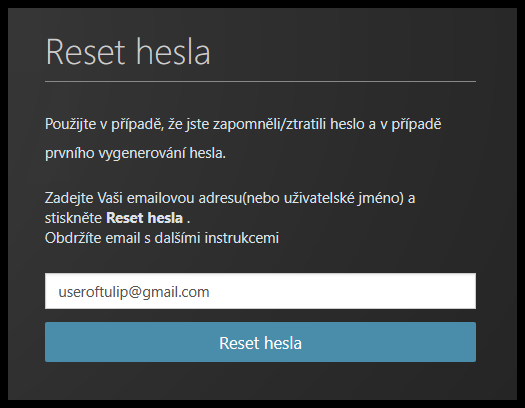 Klikněte na Reset hesla.