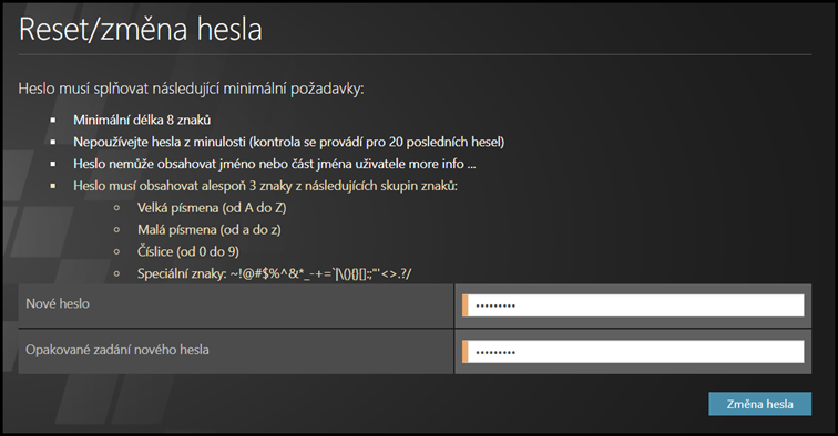 Heslo musí splňovat následující minimální požadavky: