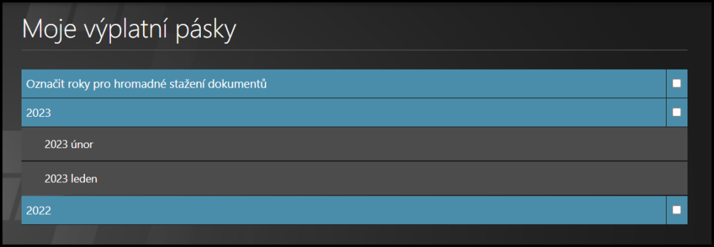 Přednastavené zobrazení zobrazuje všechny dostupné výplatní pásky za rok od nejstarší po nejnovější.