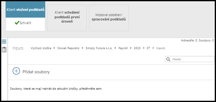 Tento manuál obsahuje pokyny k procesům spojeným se zpracováním (mzdových dokumentů) ze strany Klienta. Jde o specifickou strukturu složek s přednastaveným schvalovacím postupem. Mzdové složky se automaticky generují každý měsíc.