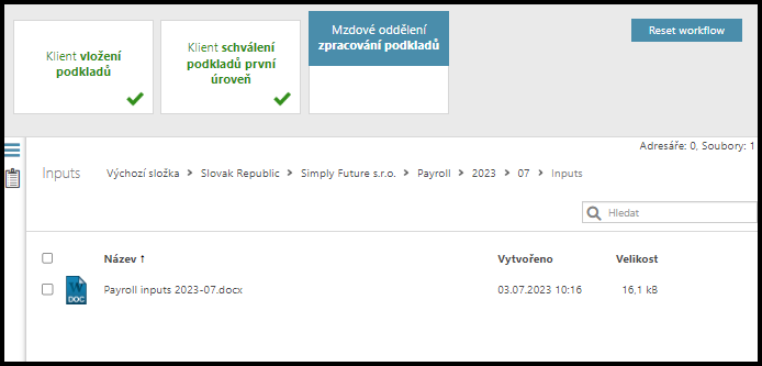 Zkontrolujte a schválte soubory výpočtu mezd zaslané od zpracovatele.