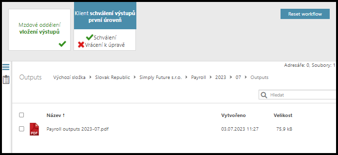 Schválení VÝSTUPŮ / VÝPLATNÍCH PÁSEK