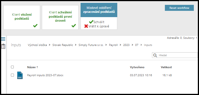 - Schválení výstupů / výplatních pásek (Klient)