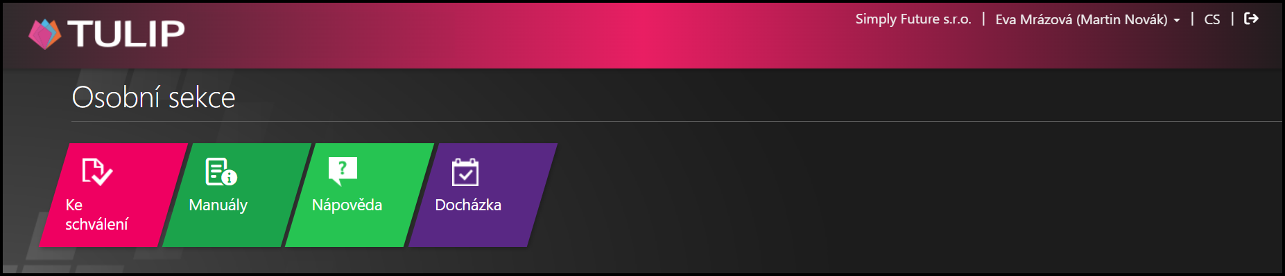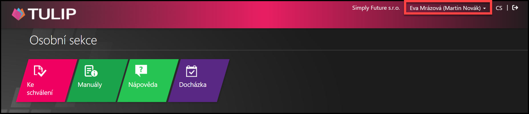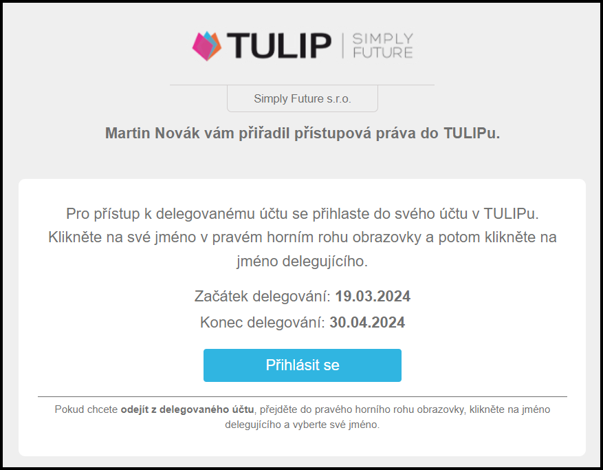 Upozorňujeme, že nastavení TULIP-u, které vidíte, vždy závisí na individuálních požadavcích a nastaveních přístupu do TULIP-u pro vaši společnost. Ne všechny společnosti využívají funkci Delegace.