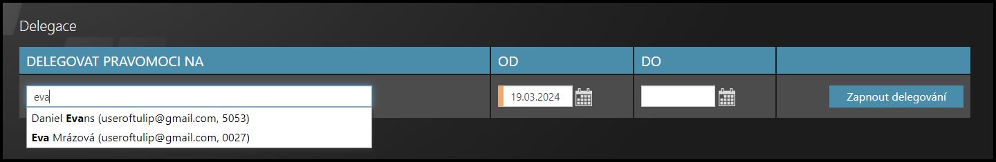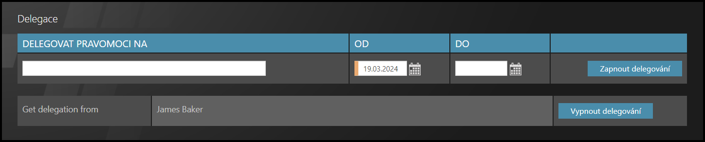 Pro ukončení delegace klikněte na tlačítko Vypnout delegování.