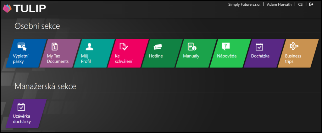 Upozorňujeme, že nastavení TULIPu, které vidíte, vždy závisí na individuálních požadavcích a nastaveních přístupu do TULIPu pro vaši společnost. Ne všechny společnosti využívají funkci nastavení domovské stránky.
