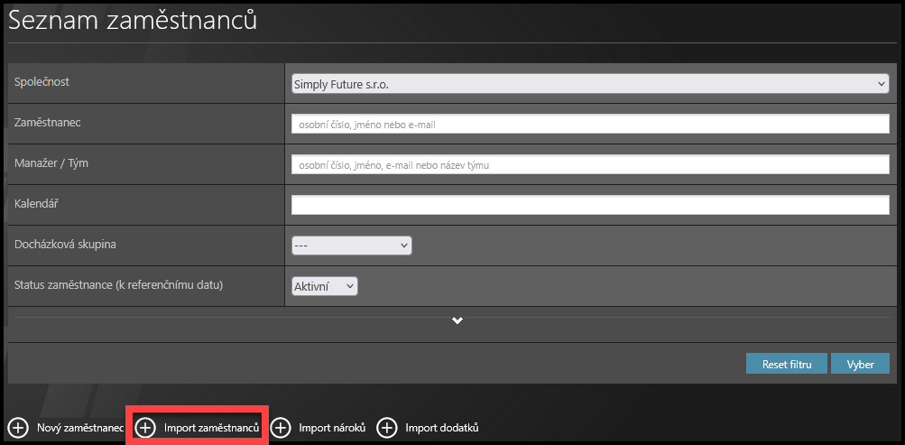 - nebo importujte pouze tohoto zaměstnance v tabulce.