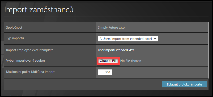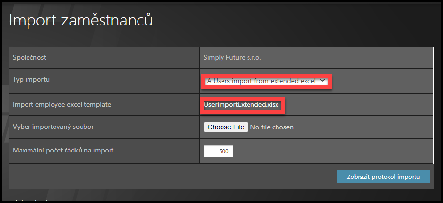 - Users import from extended excel – Import uživatelů z rozšířeného excelu – obsahuje další a volitelné údaje, například IBAN nebo docházkovou skupinu zaměstnance.